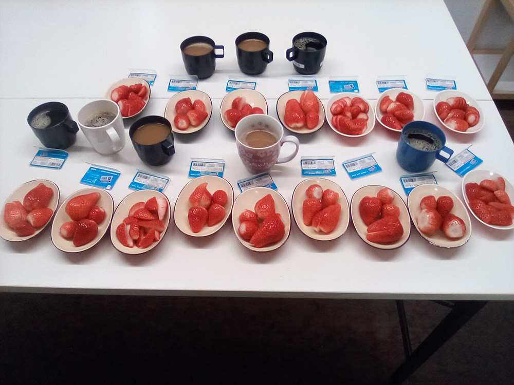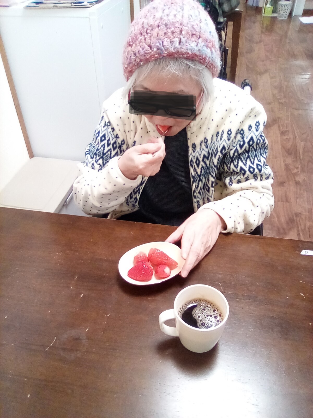 今月のフルーツは皆様のリクエストもあり、いちごです! 甘いいちごとコーヒーがベストマッチだったようで 皆様おいしく召し上がってました!!